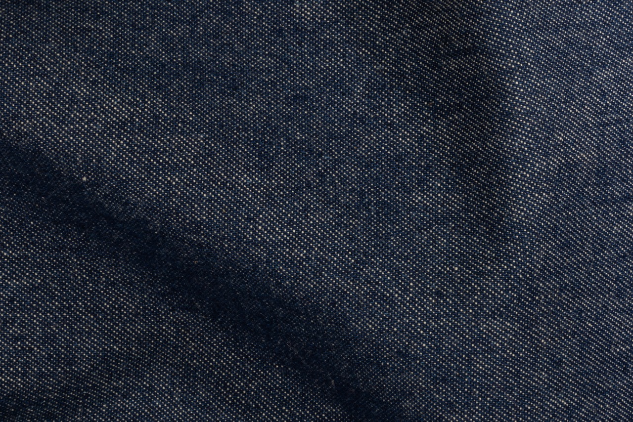 02-5 布生地:岡山県倉敷産 10オンスデニム:ブルー5「俯瞰撮影/右側スポット照明」シワ Wrinkles