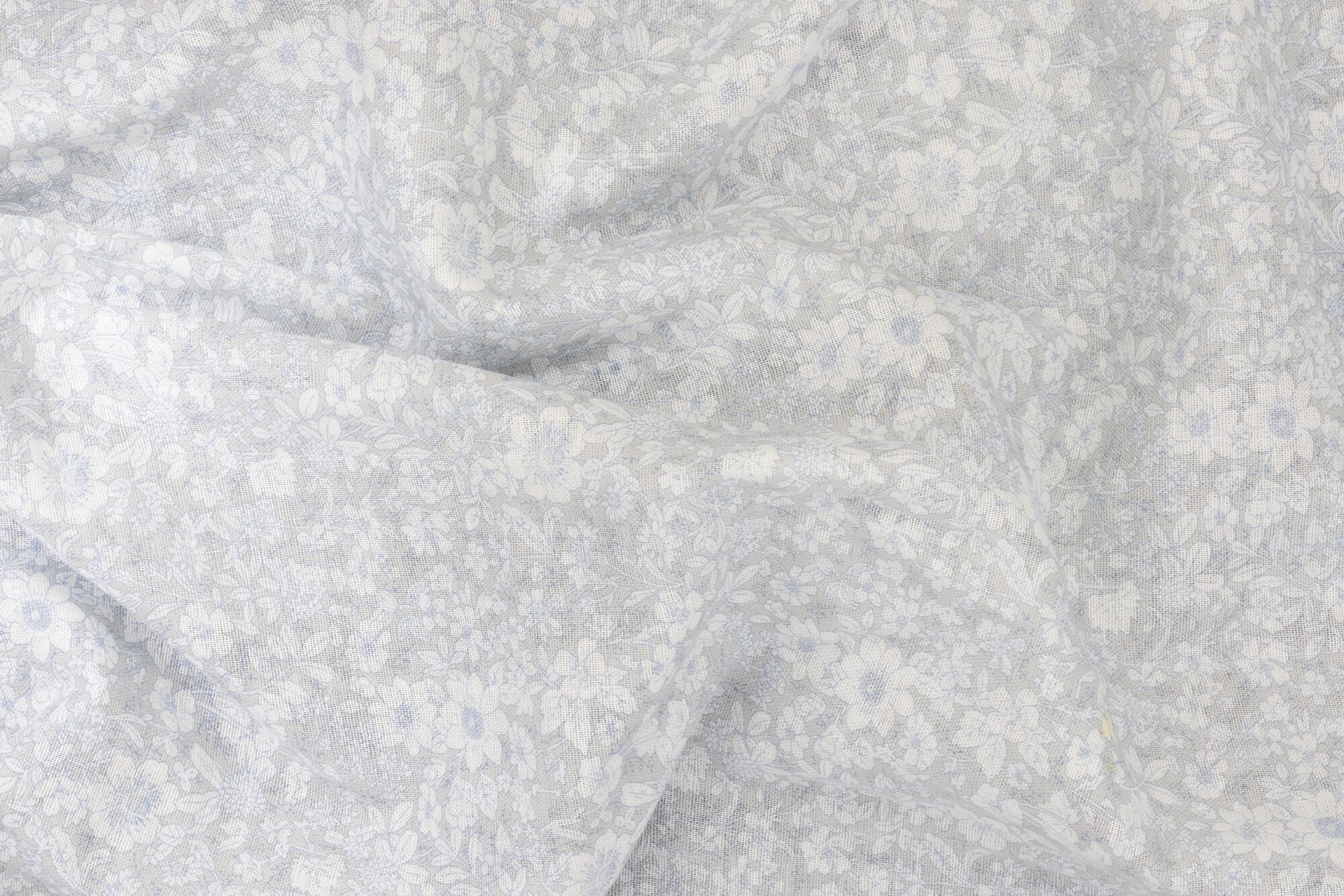 03-5布生地:Wガーゼ 単色小花柄 2番色:ホワイト5「俯瞰撮影/左側スポット照明」シワ Wrinkles
