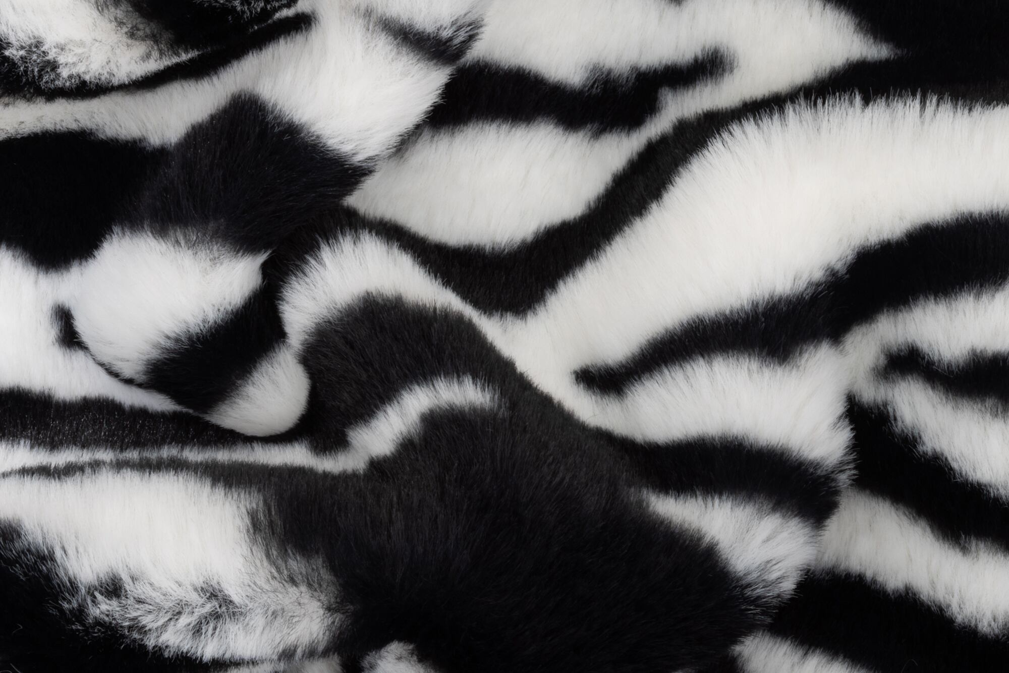 うさぎの毛皮のように柔らかくふわふわのファー生地、白黒のはっきりとしたゼブラ柄です。