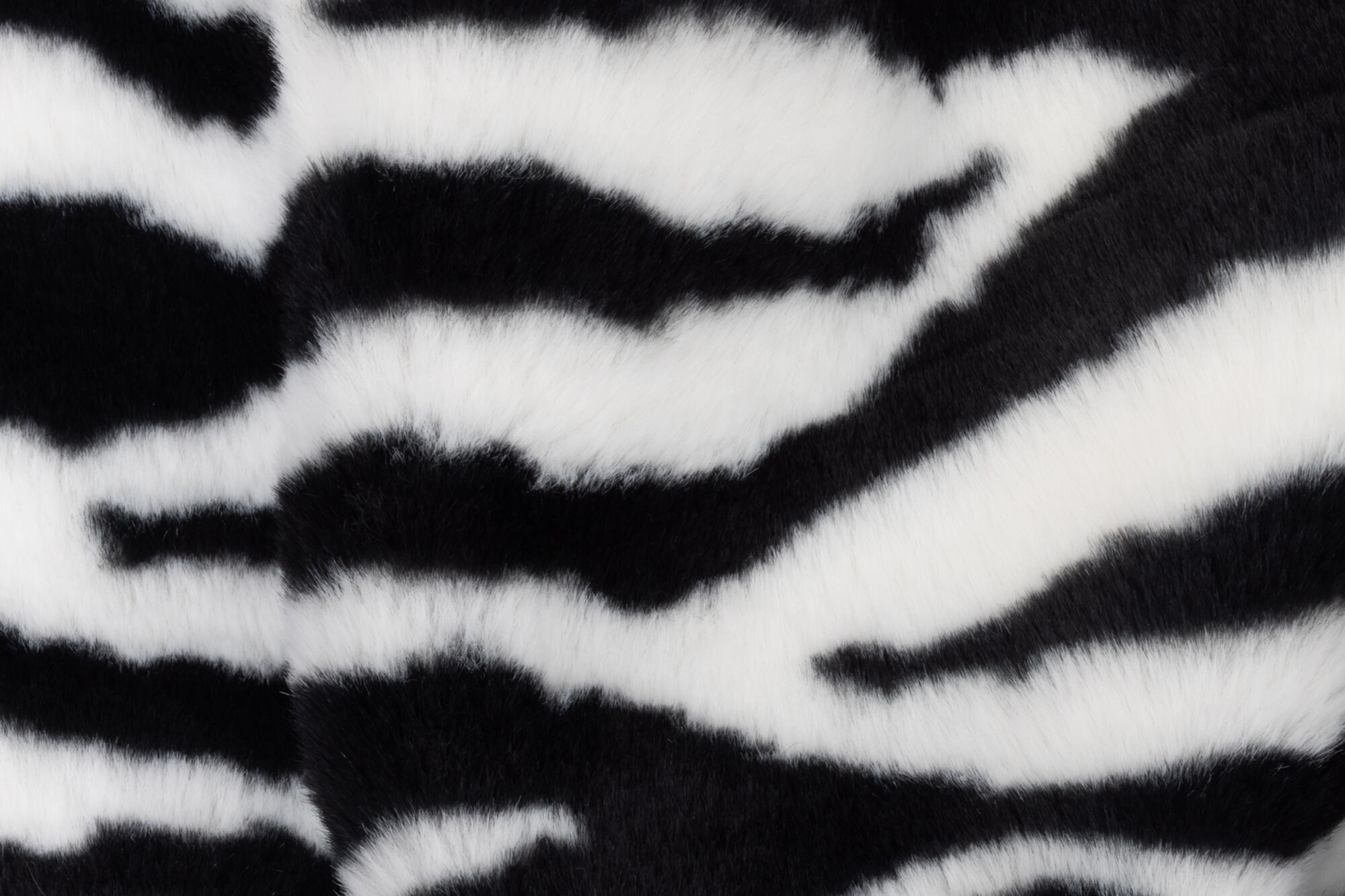 うさぎの毛皮のように柔らかくふわふわのファー生地、白黒のはっきりとしたゼブラ柄です。