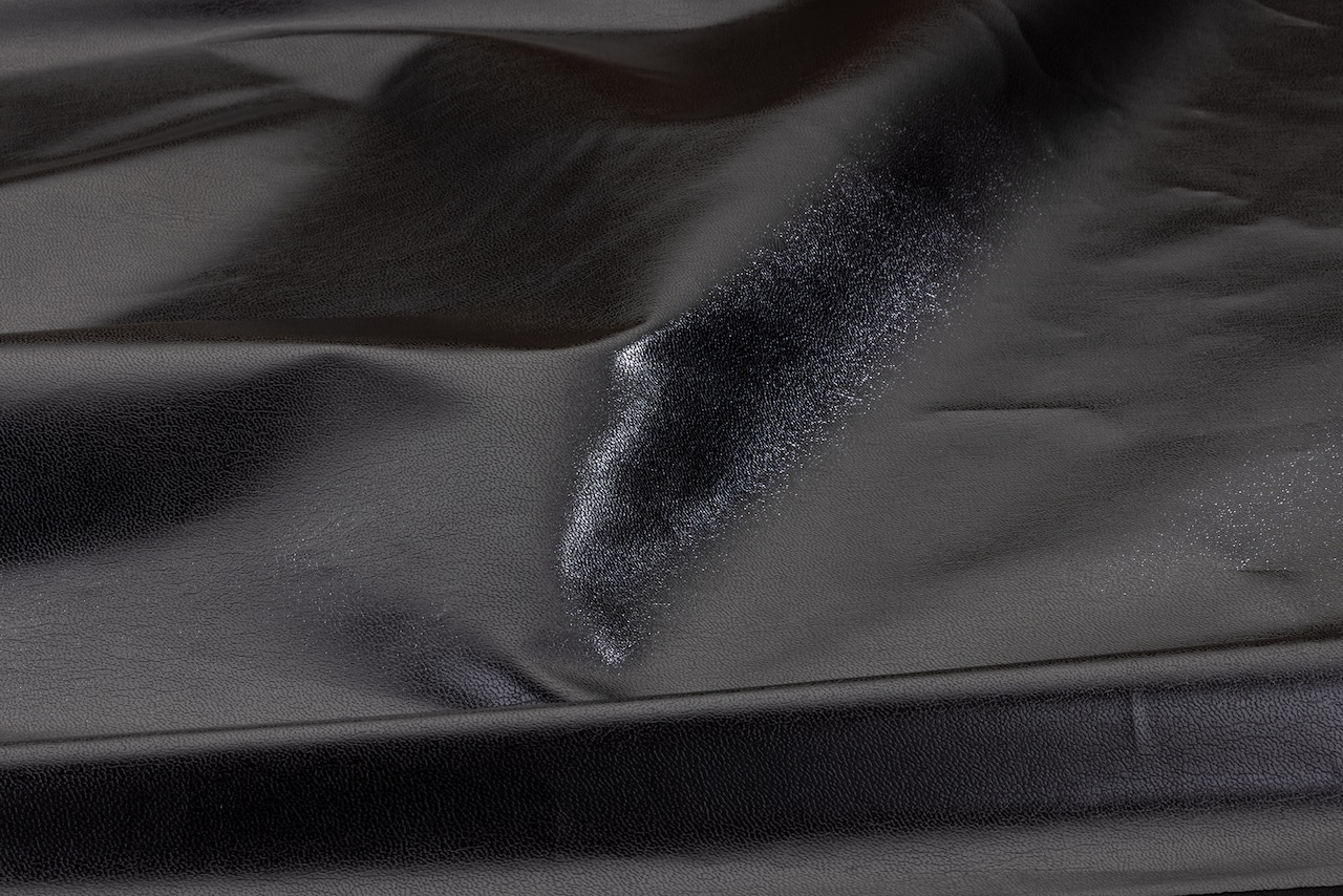 生地の薄さと強い光沢が特徴的な合成皮革生地です。