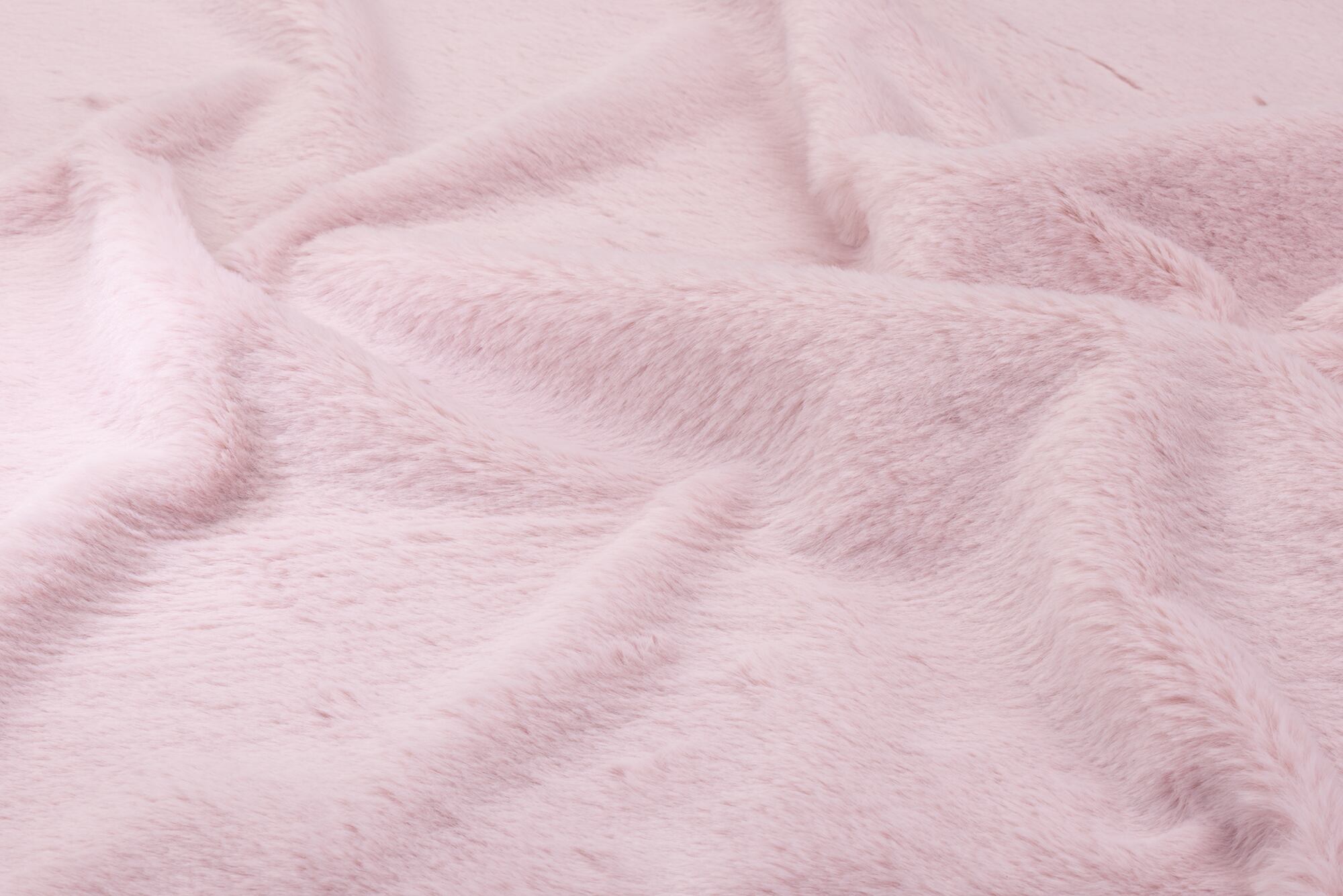 15A-4 布生地:ふわふわラビットファー カットクロス: ソフトピンク4「斜め撮影/左側スポット照明」シワ Wrinkles