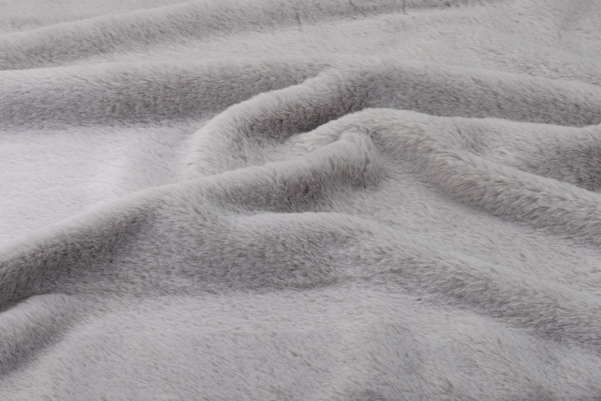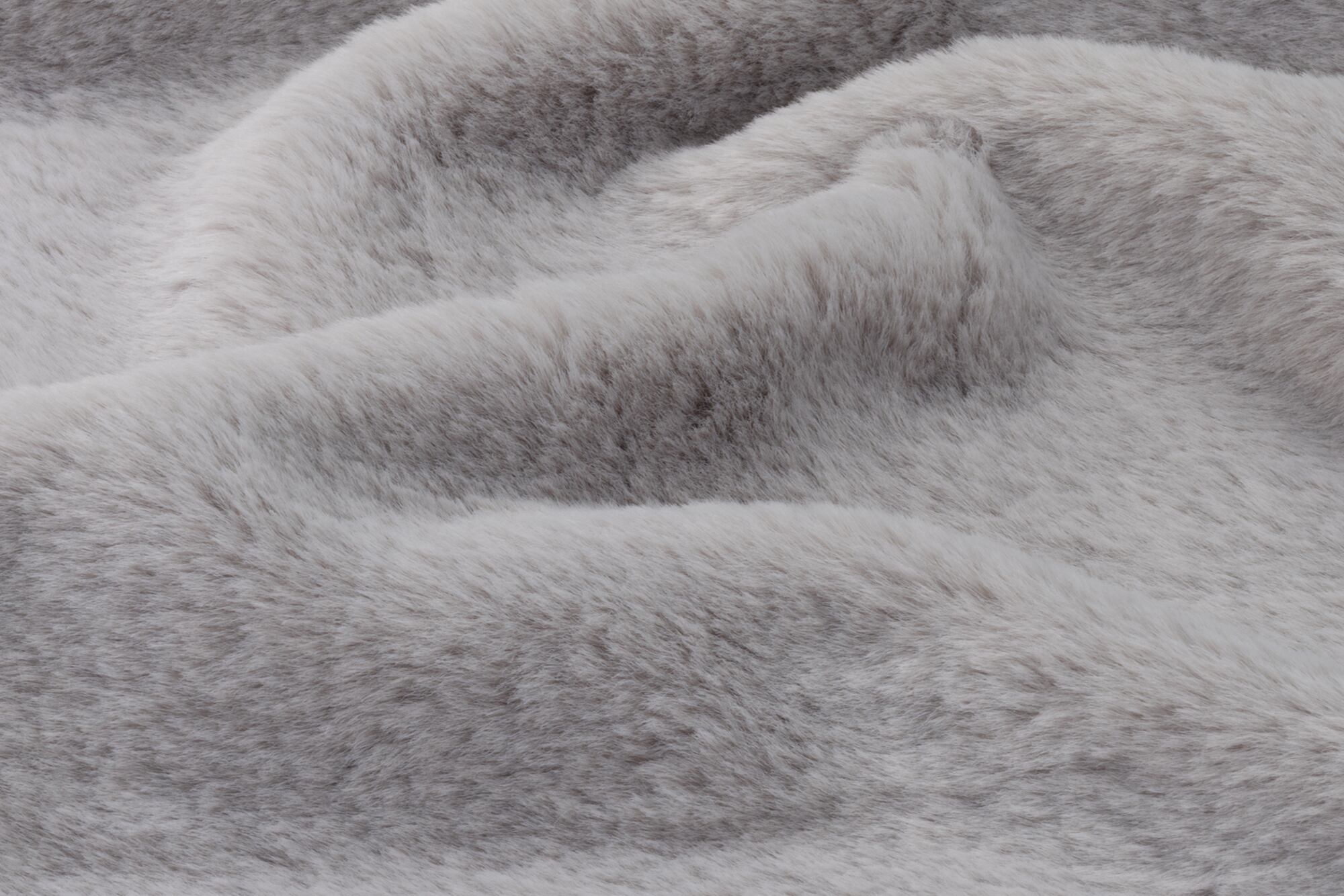 12A-5 布生地:ふわふわラビットファー カットクロス: グレージュ5「斜め撮影/左側スポット照明」シワ Wrinkles