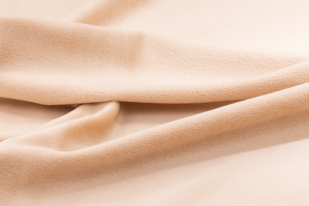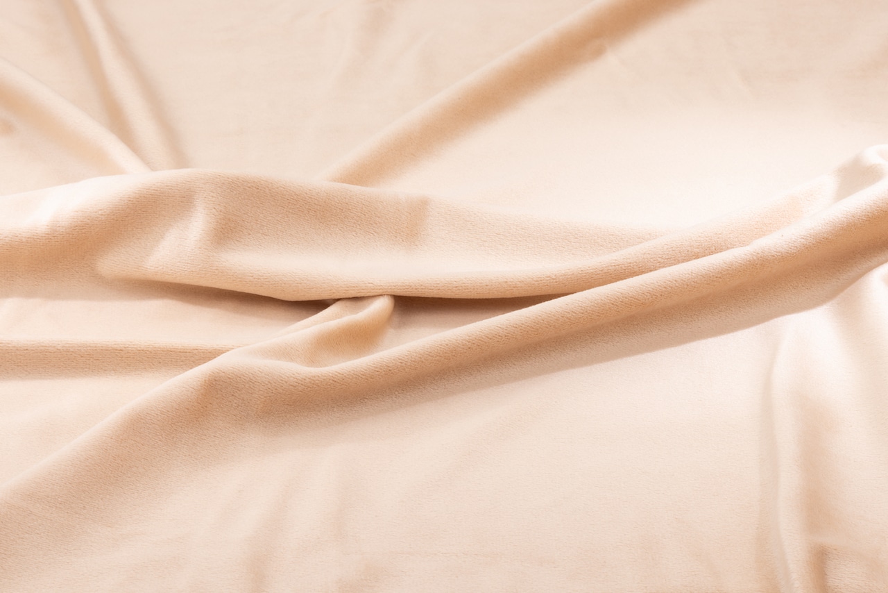 11A-4 布生地:もちもちニット カットクロス: ベージュ4「斜め撮影/両側スポット照明」シワ Wrinkles