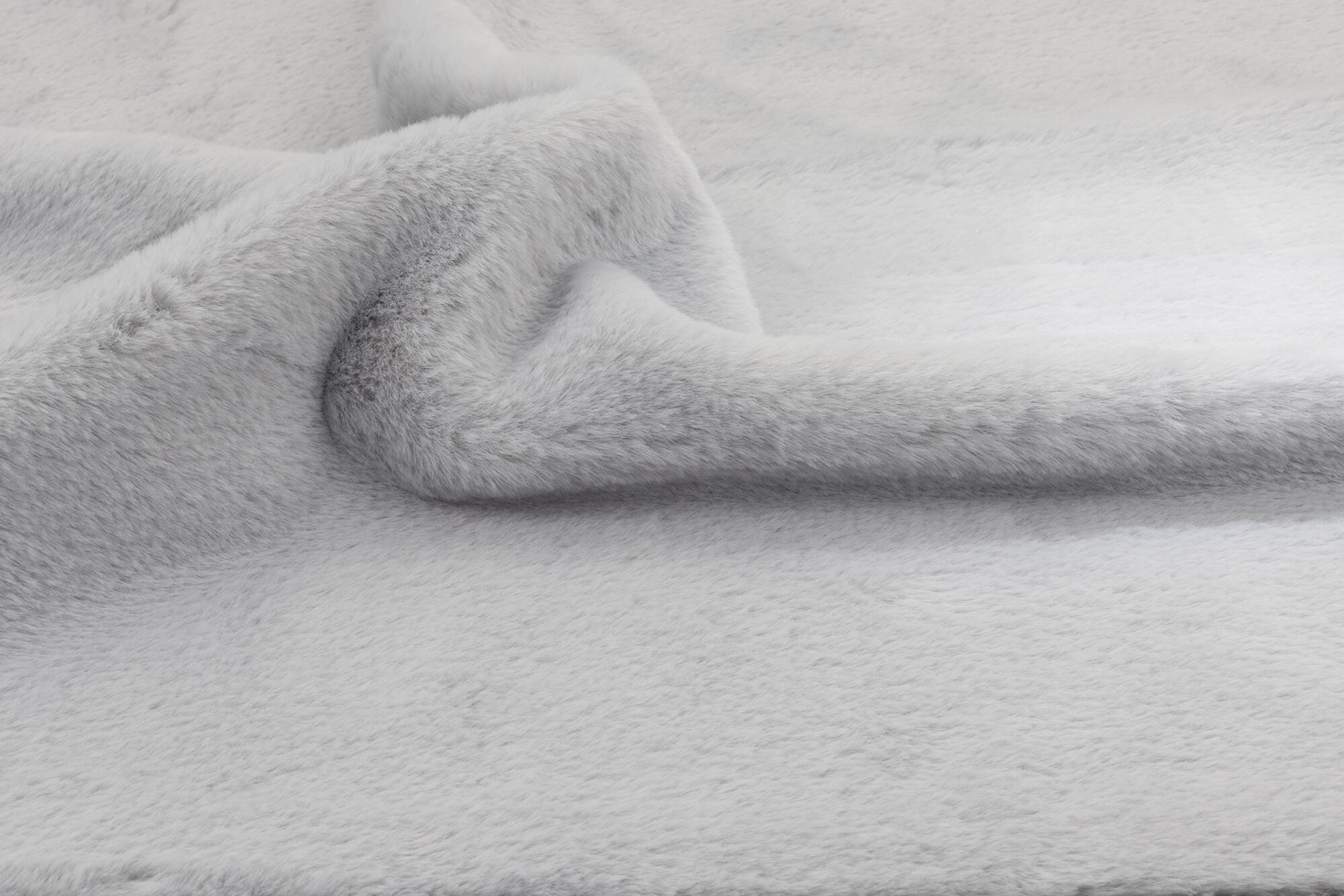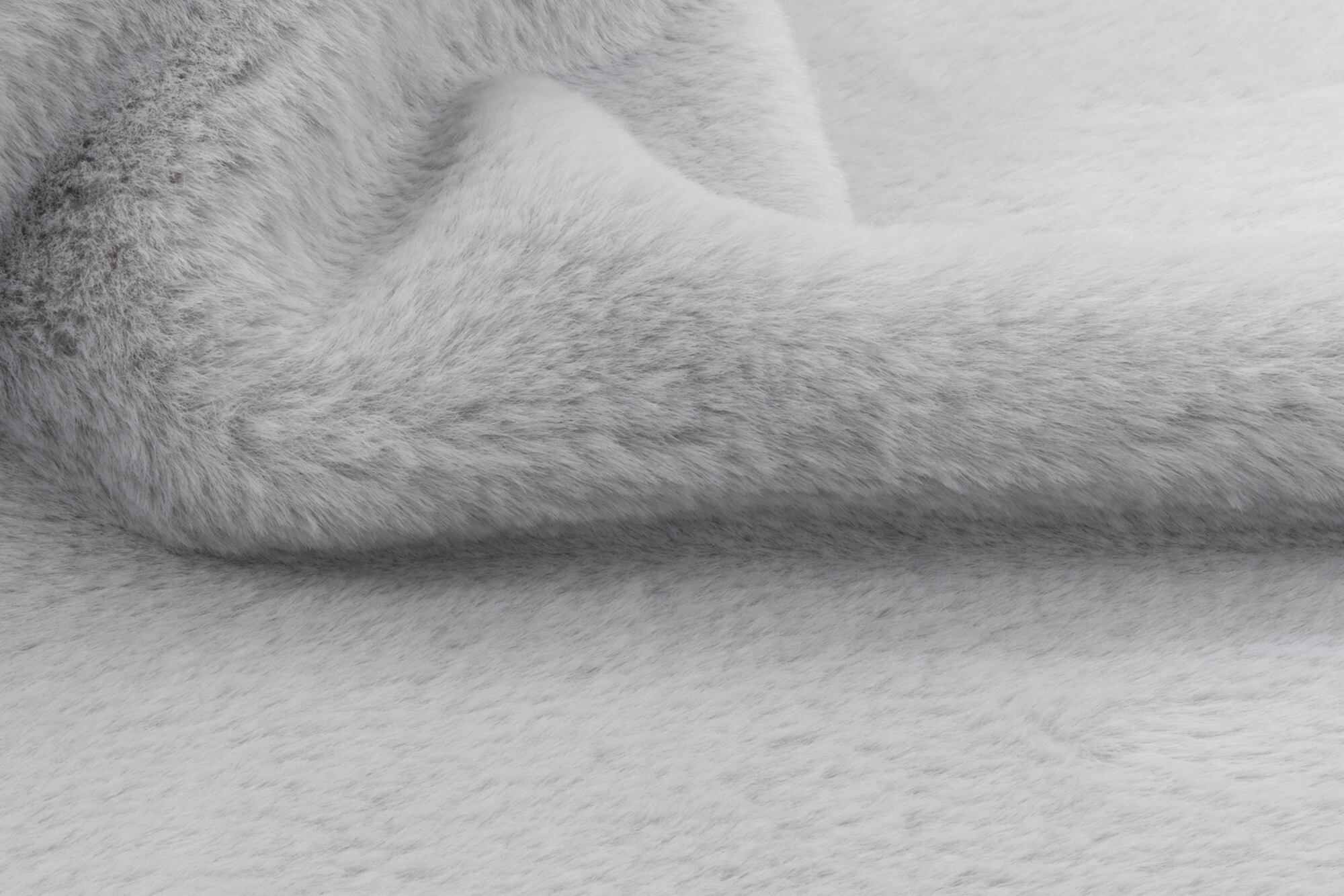 09A-4 布生地:ふわふわラビットファー カットクロス: ライトグレー4「斜め撮影/右側スポット照明」シワ Wrinkles