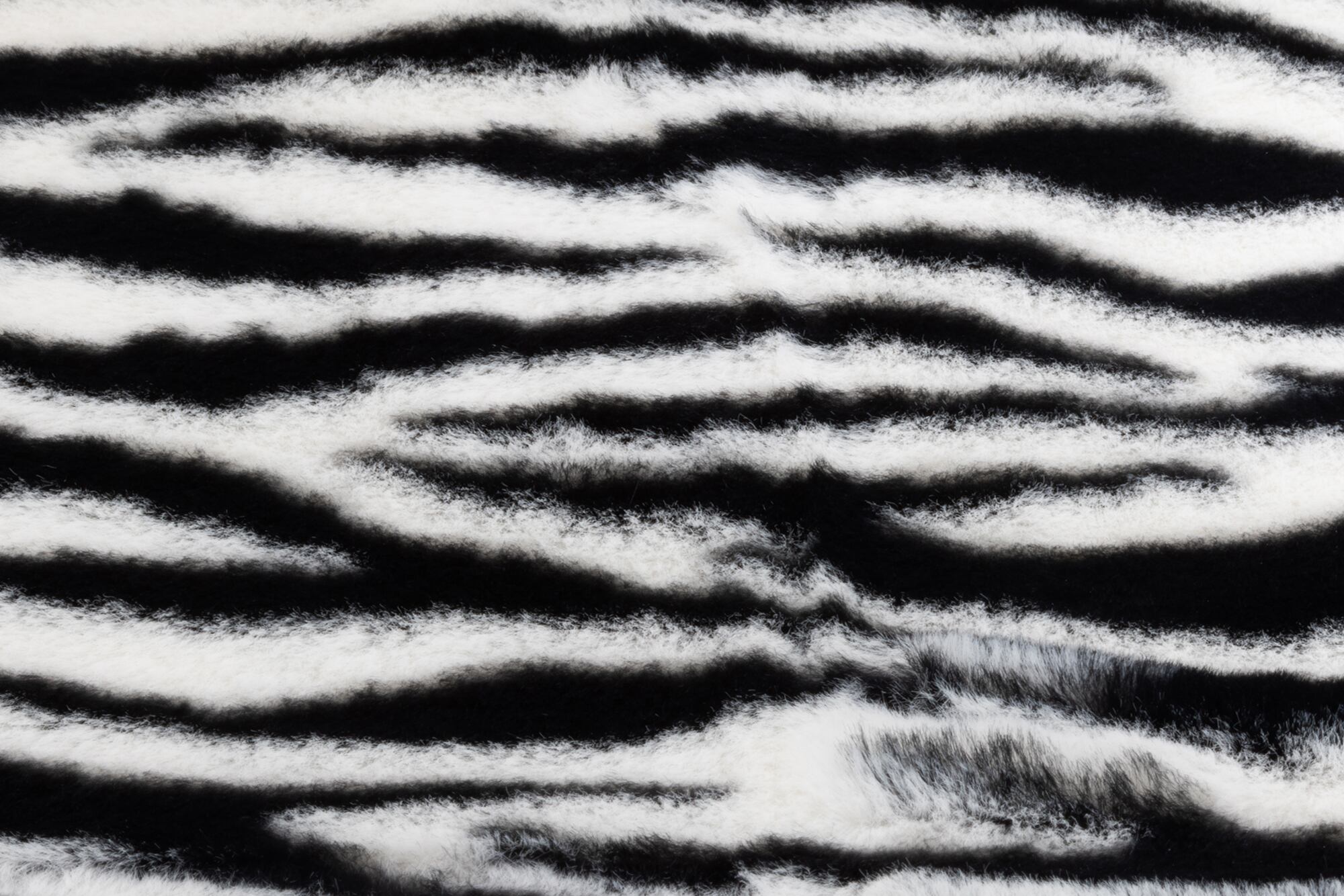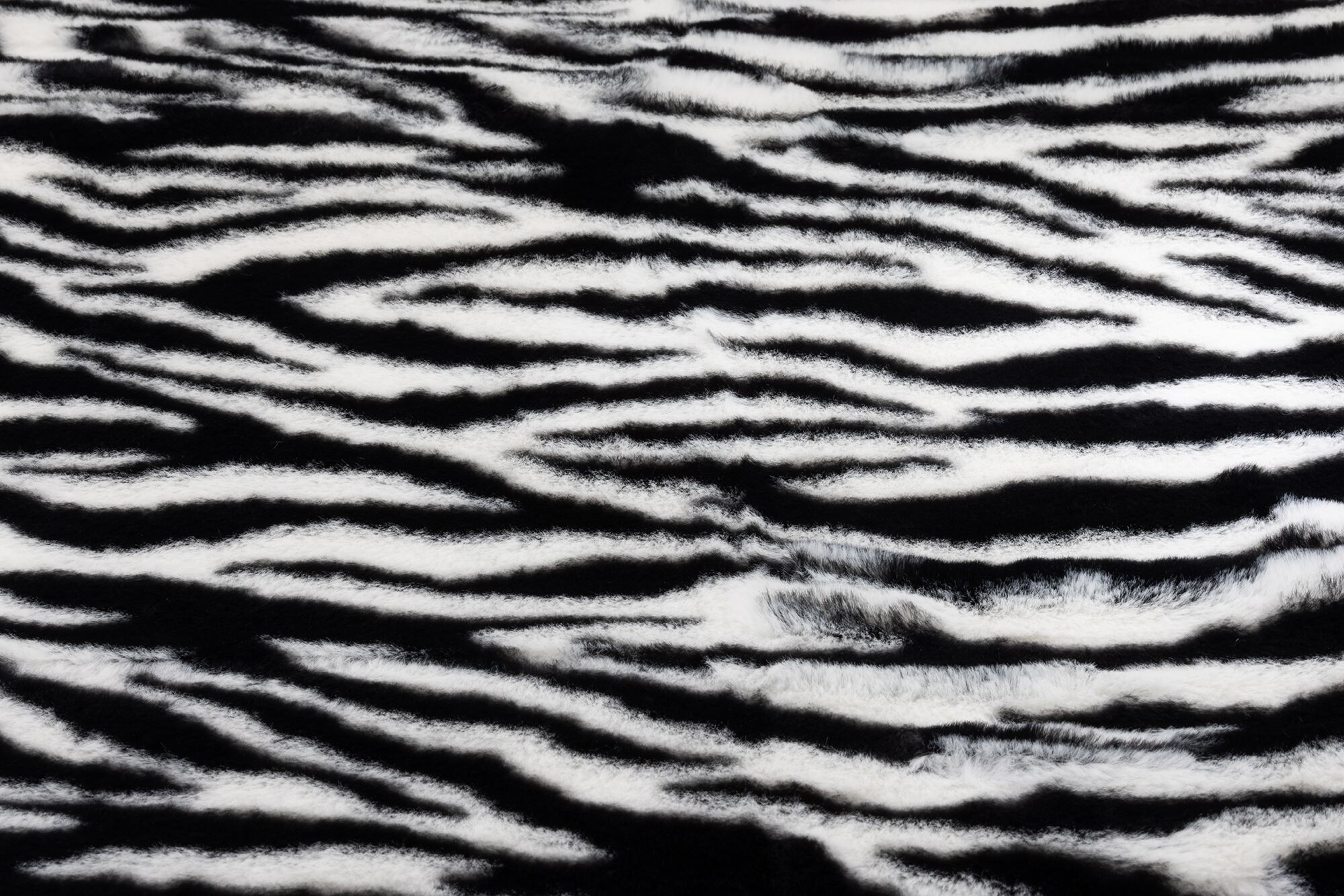 うさぎの毛皮のように柔らかくふわふわのファー生地、白黒のはっきりとしたゼブラ柄です。