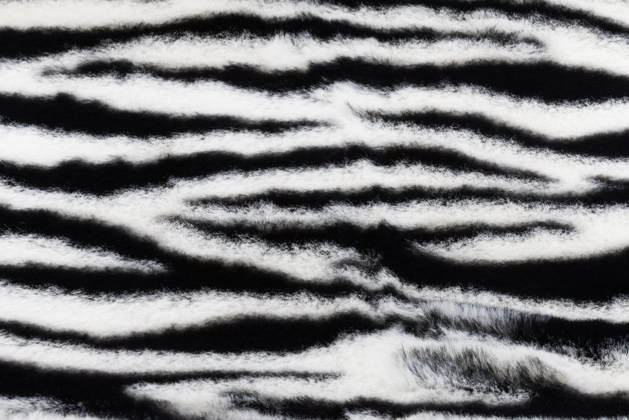 うさぎの毛皮のように柔らかくふわふわのファー生地、白黒のはっきりとしたゼブラ柄です。