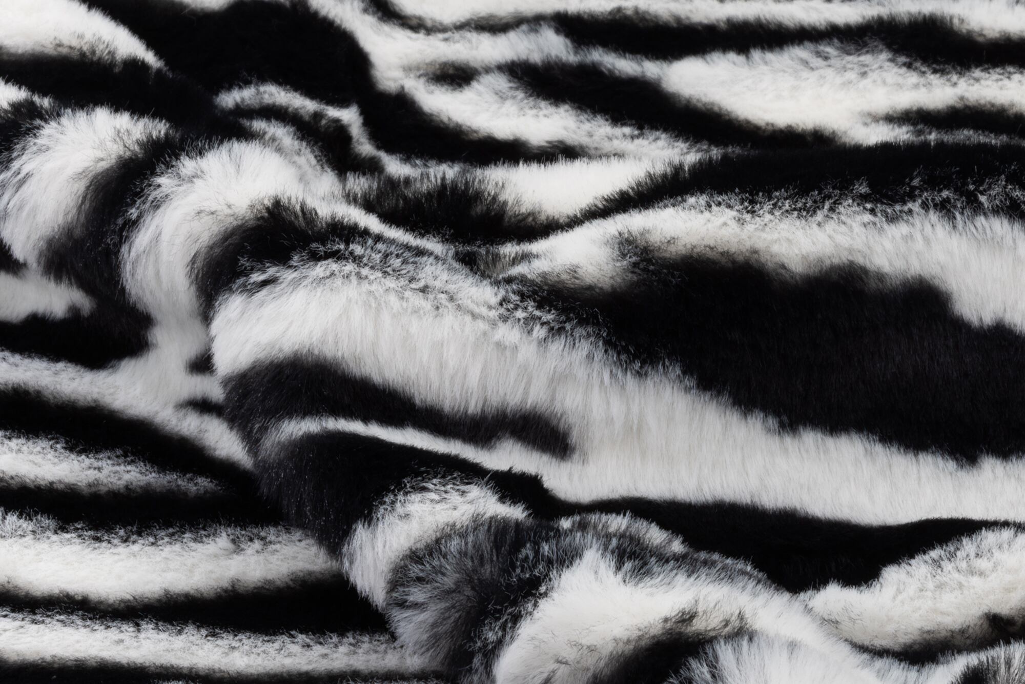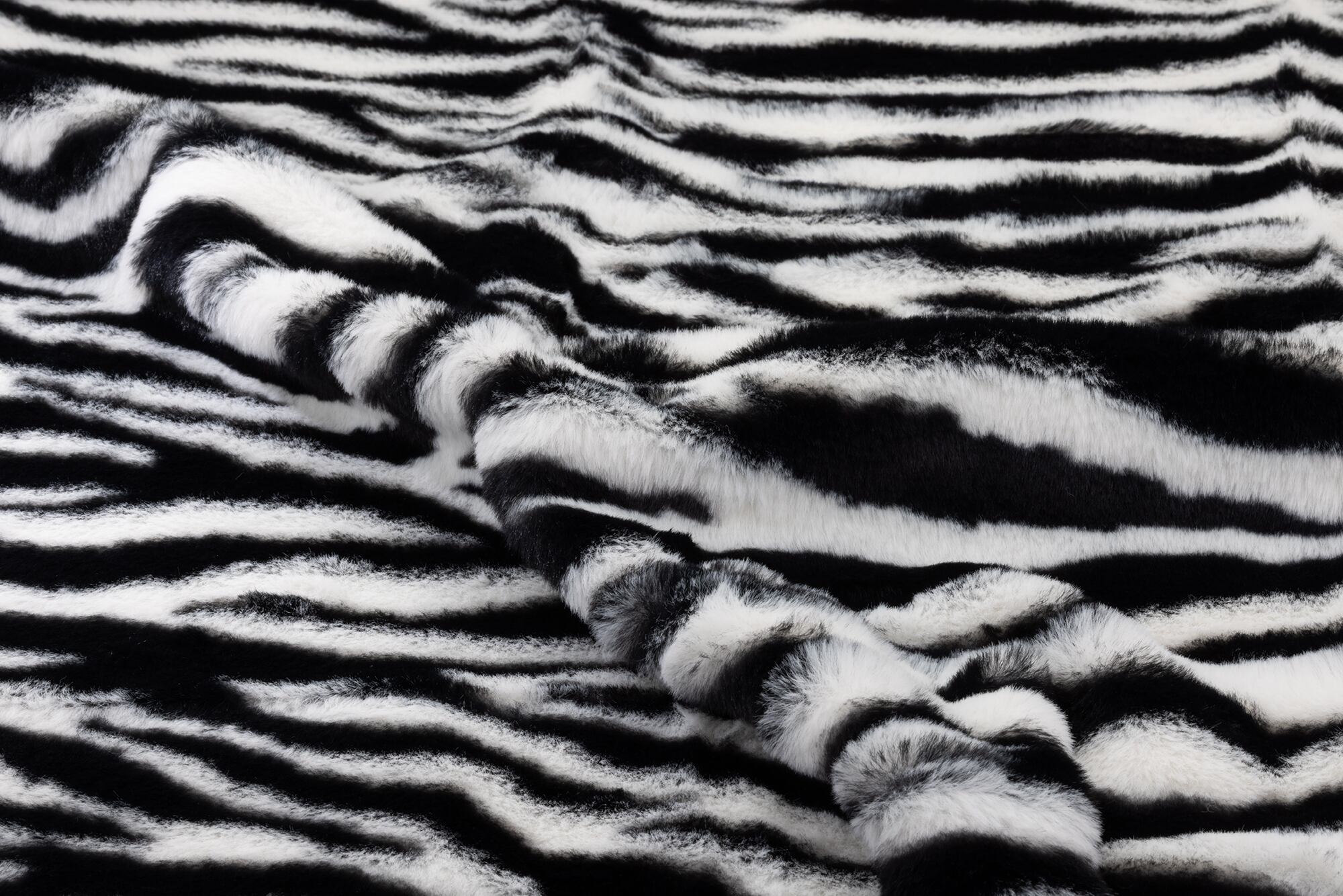 うさぎの毛皮のように柔らかくふわふわのファー生地、白黒のはっきりとしたゼブラ柄です。